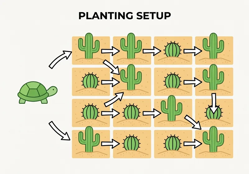 - Requires a turtle with fuel (e.g., coal) and access to sand blocks and cacti for planting.