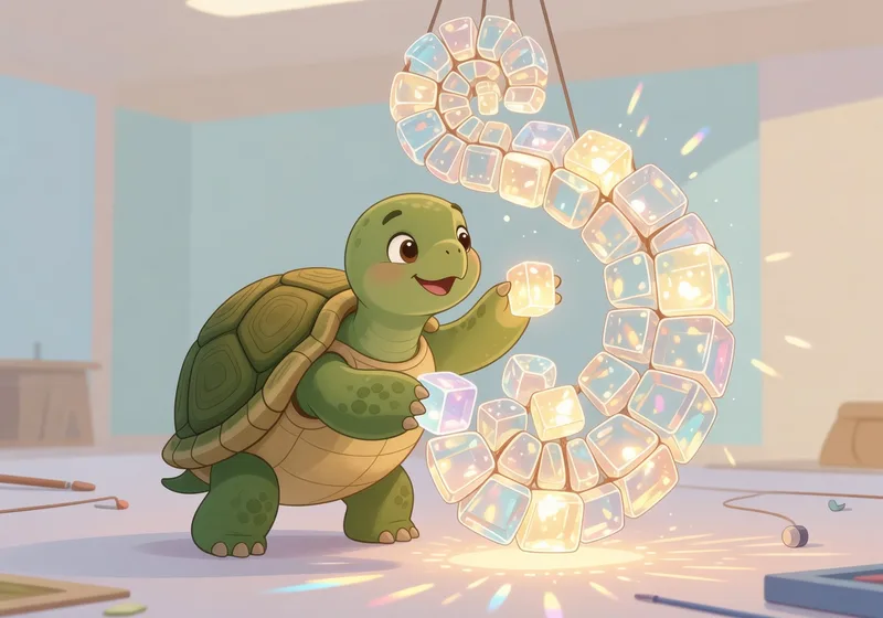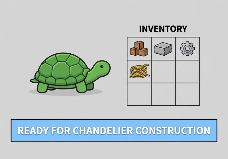 Build a dome or enclosure first (as shown in the 04:18 timelapse) to house the chandelier. For inspiration, check Grian's video linked in the description. Ensure the turtle has enough fuel and inventory space.
