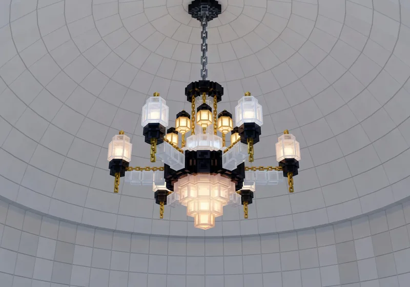 - Requirements: A fueled turtle with necessary building blocks (e.g., glass, iron bars, sea lanterns—refer to the video or Grian's original for exact materials). Ensure the turtle is placed in a prepared area like a dome for the chandelier to fit.