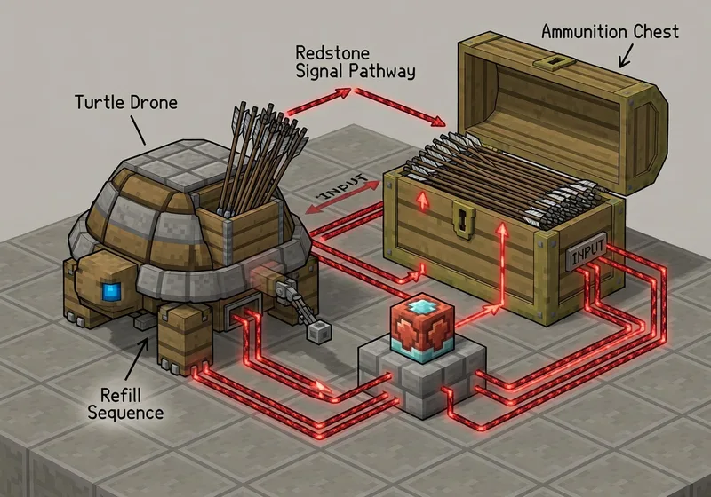 You'll need a turtle equipped with a wireless modem, sufficient fuel (e.g., coal), and items to drop (arrows or TNT). Download the program in-game using: pastebin get A35d84ge bDrone. Ensure you're using CC:Tweaked in a compatible modpack like Direwolf20 1.16.