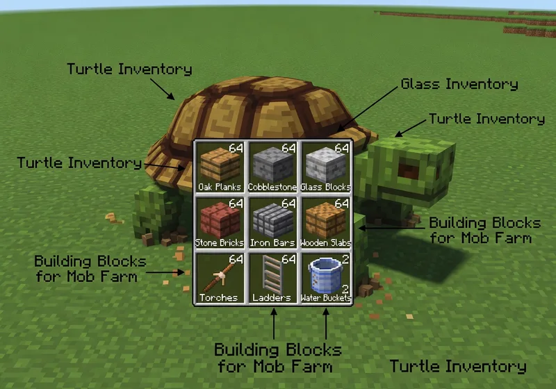 This program allows a normal turtle to automatically build a mob farm in Minecraft, providing an early-game source of experience and mob drops. No diamond tools are required for the turtle.