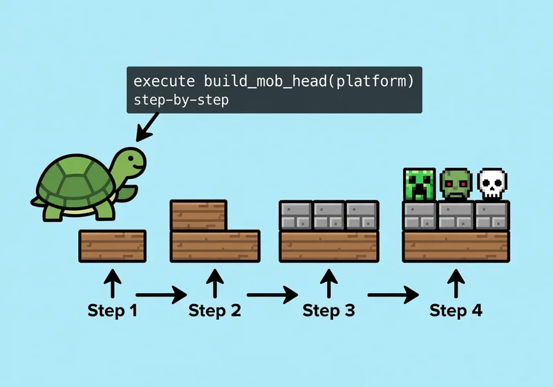 - You'll need a turtle (such as a mining or crafting turtle) with sufficient fuel and the necessary blocks in its inventory for the chosen mob head.