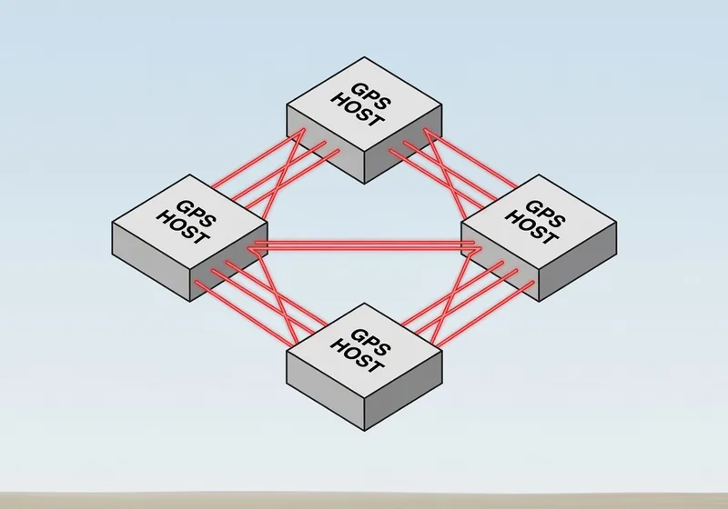 Set up multiple GPS hosts in a 3D grid for better accuracy. Watch the video for setup demonstrations.